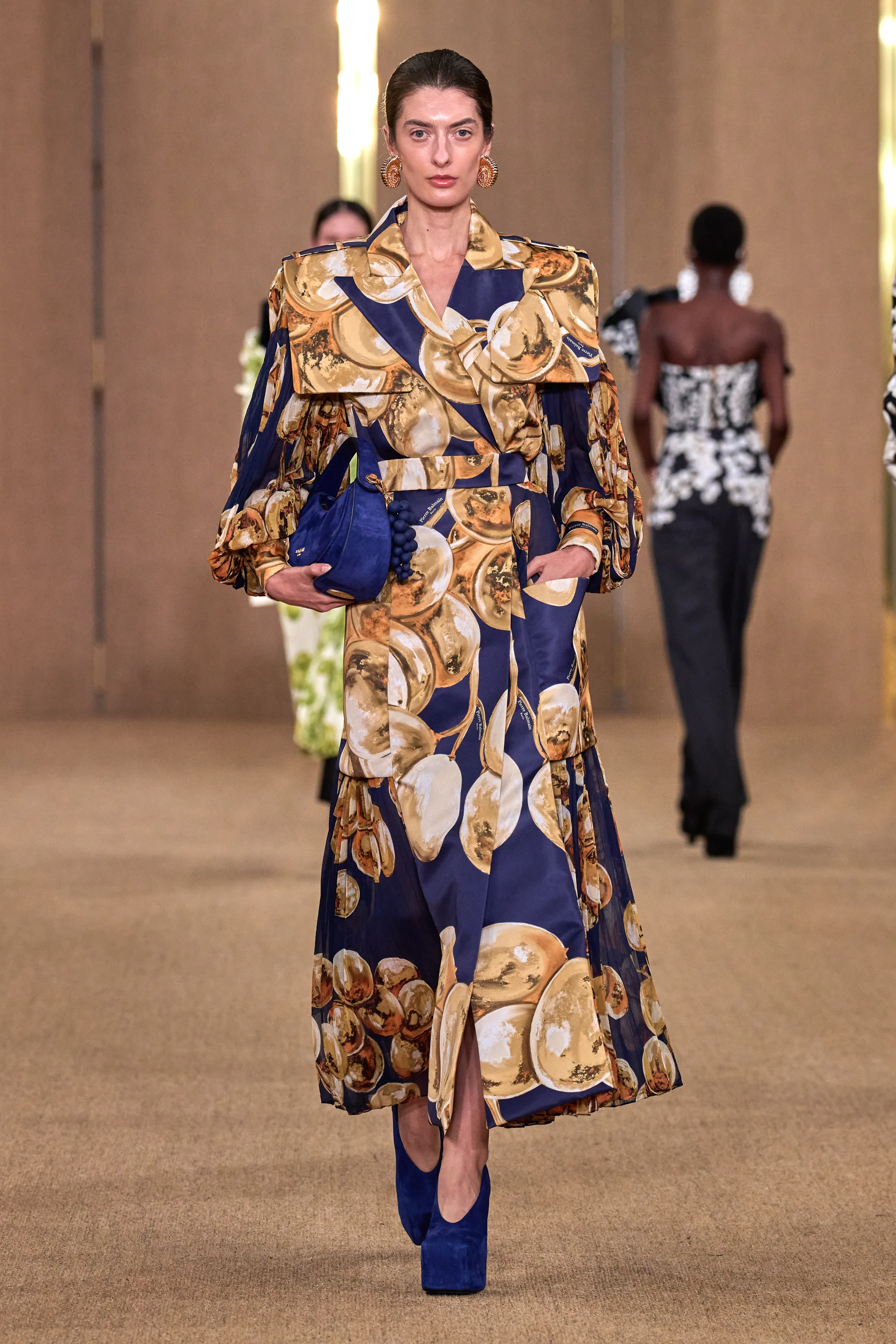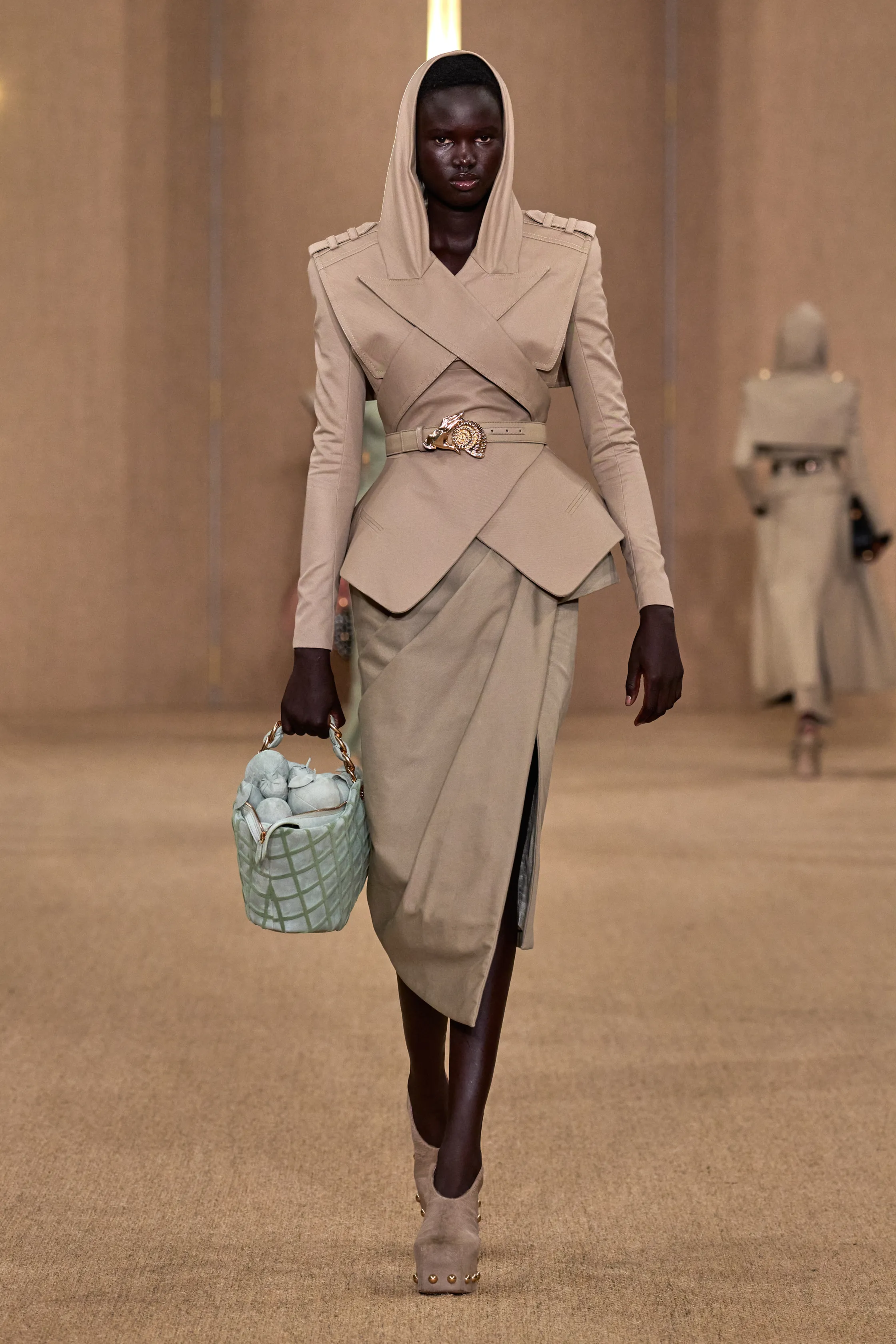 Këto firma luhen në disa ripërpunime të palltos, të gjitha të armatosura me të njëjtat butona të mrekullueshëm që Rousteing zbaton për xhaketat e markave të shtëpisë. Hendeku ishte i fortifikuar me shpatulla të fuqishme, të zbërthyera në një bluzë dhe një fund me kapuç, i riimagjinuar si produkt i formës së Jolie Madame me belin të prerë dhe flautit të Pierre Balmain ose të prerë në lëkurë. Gingham, një pasqyrim sipërfaqësor i dualitetit të brendshëm prej kohësh të trazuar dhe tashmë të qetësuar të Rousteing (si dhe batanija e piknikut), u riprodhua në vija pikturë njëngjyrëshe ose marina dhe kristal argjendi që mbivendosen në fustane. Disa fustane dhe bluza vinin me xhaketa të mprehta dhe të theksuara në anën e majtë, të skajshme me më shumë metal për më shumë theksim: këto nganjëherë vendoseshin sipër pantallonave të gjera të zhveshur, Rousteing tha se ishin dizajnuar pas një modeli të frymëzuar nga Xhudo të viteve 1960, krijuar për herë të parë nga themeluesi.