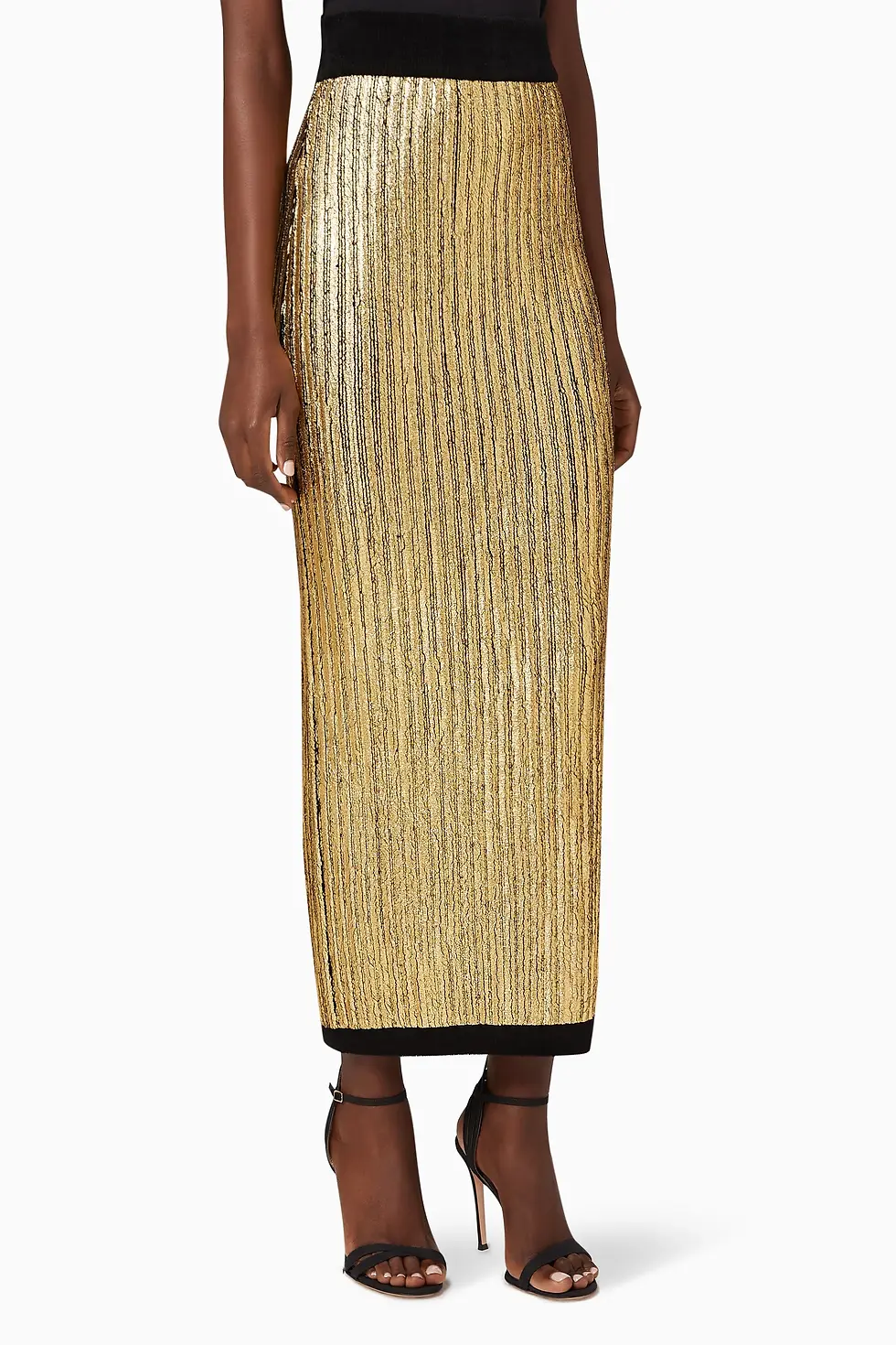 BALMAIN metallic-effect high-waisted skirt UF14703K146